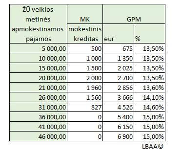 📌taikytos prielaidos: 2026 m. VDU=2300, MMA=1038, PM 6 % , kai pajamos iki 0,3 mln. Eur