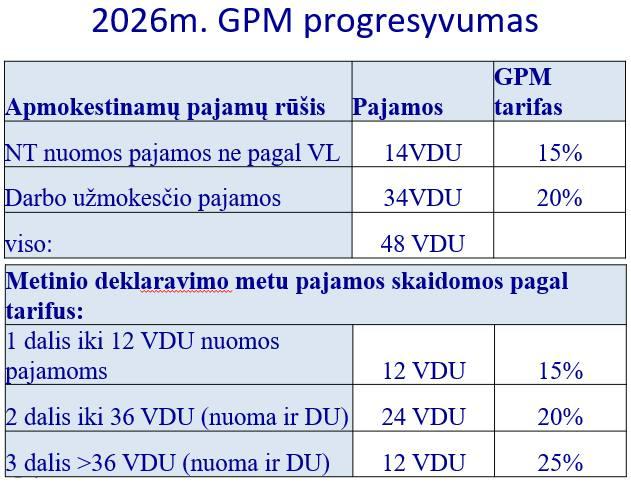 2026 M. GPM BUS PERSKAIČIUOJAMAS METINĖSE GYVENTOJŲ PAJAMŲ DEKLARACIJOSE