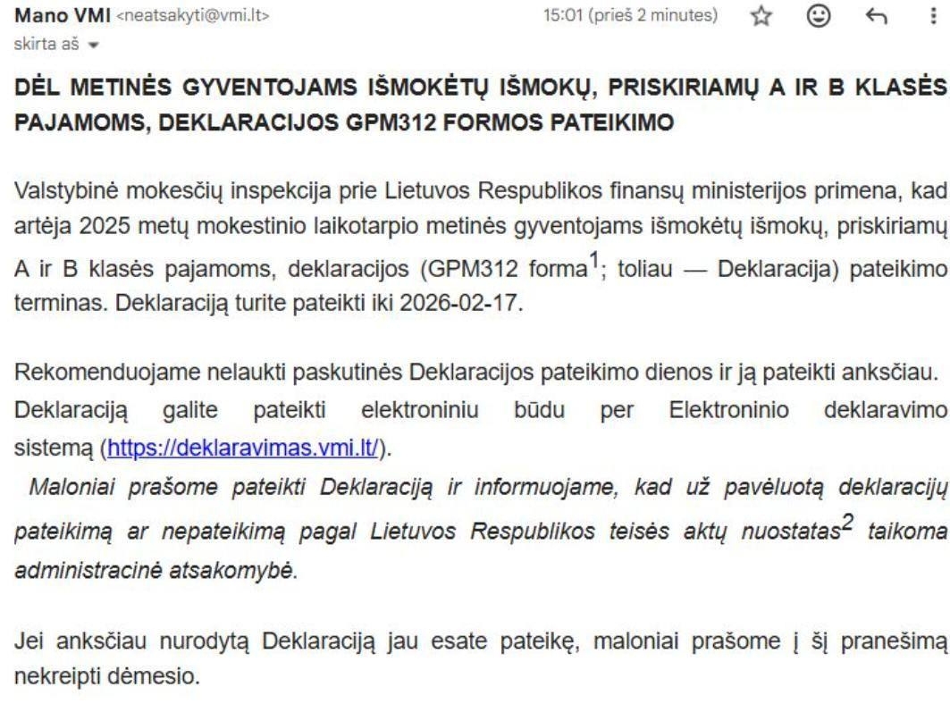 Paveiksliuke - VMI priminimas, kurį gavo visi: ir tie, kurių deklaracijos buvo atmestos dėl VMI kaltės.