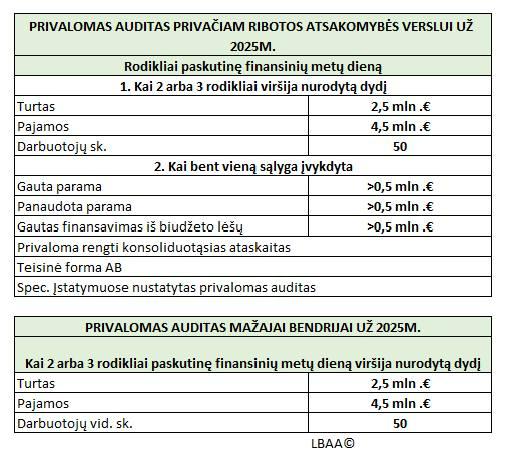 🧐Paveiksliuke – informacija, kam taikomas privalomas finansinių ataskaitų auditas.