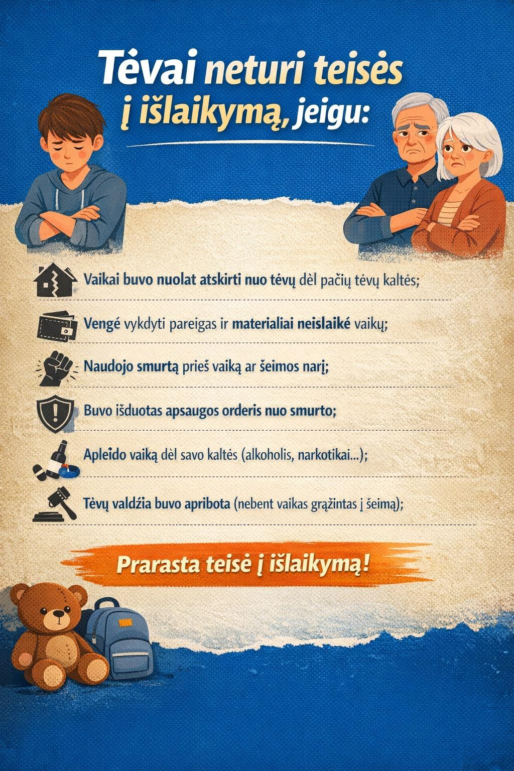 Tėvai neturi teisės į išlaikymą, jeigu: