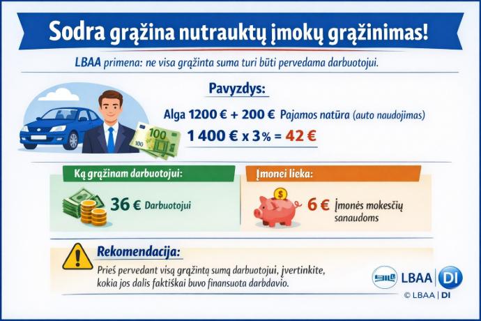 📍 LBAA atkreipia dėmesį, kad ne visada visa grąžinta suma turėtų būti pervedama (grąžinama darbuotojui).