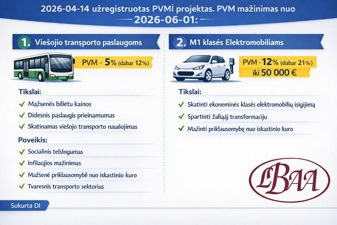 📍 PVM -12 % (dabar 21%), kai automobilio vertė su PVM ≤ 50 000 Eur