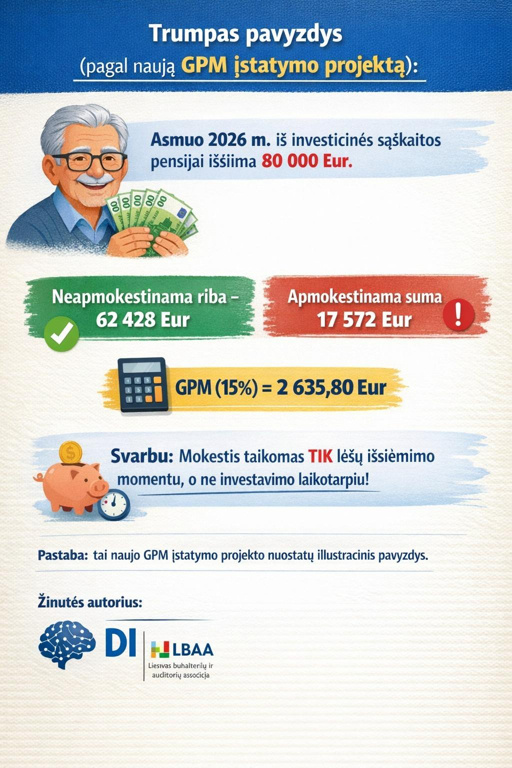 🧐 Pvz.: Asmuo 2026 m. iš investicinės sąskaitos pensijai išsiima 80 000 Eur.
